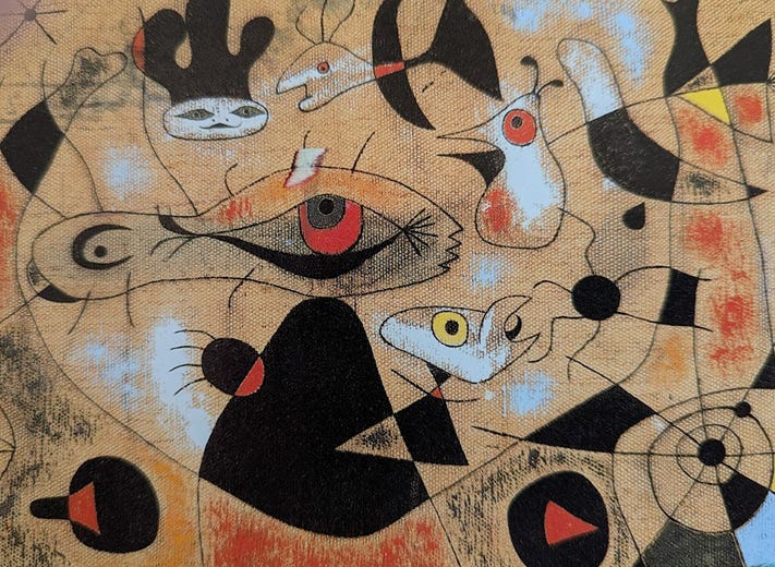 Here is a table of guests at Bistro Catherine (Miró – A Dew Drop Falling From a Bird’s Wing Wakes Rosalie, Who Has Been Asleep in the Shadow of a Spider’s Web, 1939)